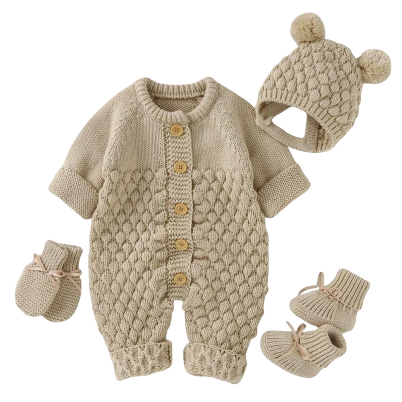 “Great experience from start to finish. I had a question on Instagram and got a helpful reply within minutes. The knit romper and hat set feels premium, washes well, and still looks brand new after several wears.”