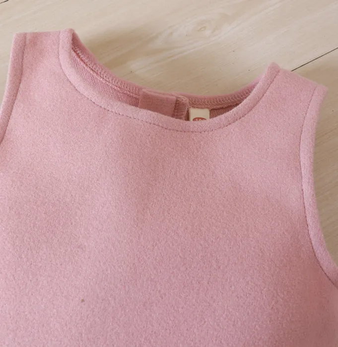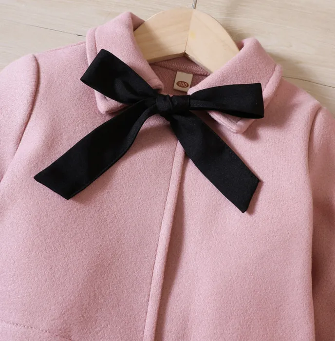 Elegant baby outfit set including a dress, matching jacket, cute hat, and stylish black bow accessory. Soft, cozy, and perfect for special occasions or outings.